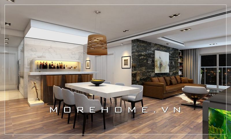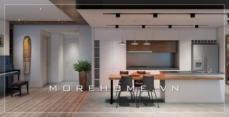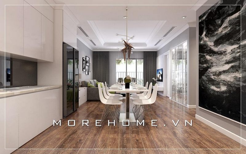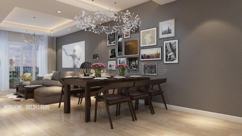 Bàn ăn nhỏ với thiết kế đơn giản phù hợp với chung cư diện tích hạn chế mang đến sự hiện đại, tiện nghi