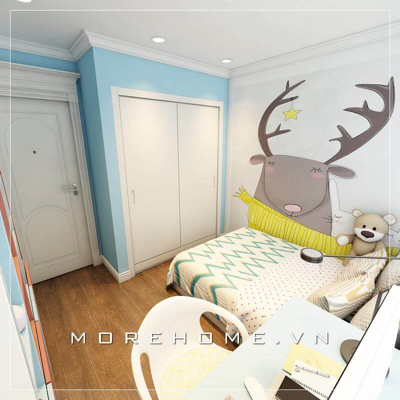 Tủ quần áo gỗ công nghiệp giá rẻ với gam màu trắng nhẹ nhàng được gia chủ lựa chọn cho phòng ngủ của 2 bé trai