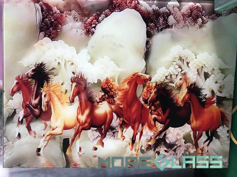 Tranh kính điêu khắc phong thủy bát mã, với hình ảnh 8 chú ngựa đang chạy với sức lực dồi dào và sức sống mãnh liệt, bên cạnh đó số 8 cũng là con số may mắn, tượng trưng cho sự phát đạt.
